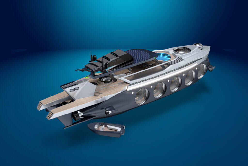 The superyacht submarine will be able to stay under water for up to four days. At cruise speed, the underwater endurance is six hours.